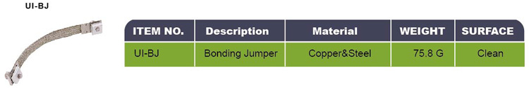 Bonding jumper is constructed of corrosion resistant, tin-plated, braid copper. Bonding jumper is used to create an electrical connection between two pieces of anodized aluminum or galvanized steel. This maintains electrical continuity over long spans or air gaps between metal structures. Bonding jumpers are available with conductive and back-up plate, which provide a reliable, gas tight electrical connection, and the braided copper wire allows for thermal expansion.